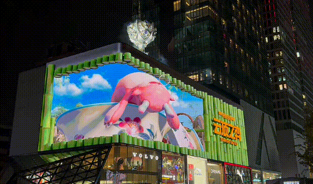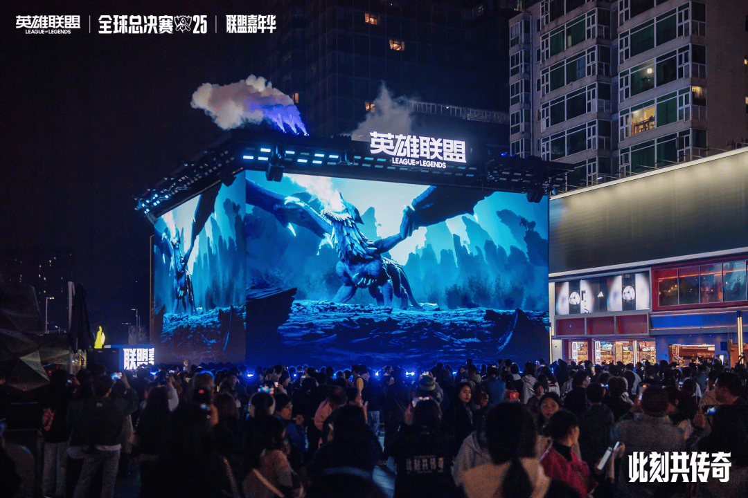 在春熙路商圈的裸眼3D大屏前,不少玩家都在等着“远古巨龙”现身,雷电特效与大屏上方的巨型召唤师奖杯配合在一起,视觉效果特别炸裂。