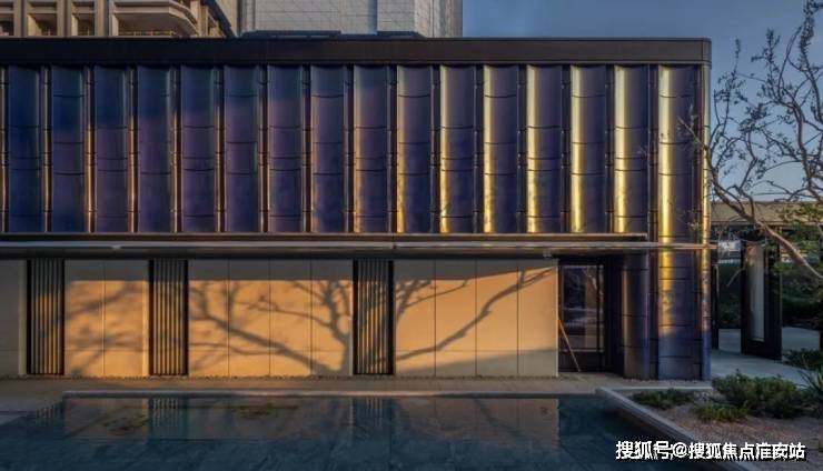 会所采用美学弧形玻璃+流光幻彩铝板,超高施工难度与成本,换来极具冲击力的未来感外观: