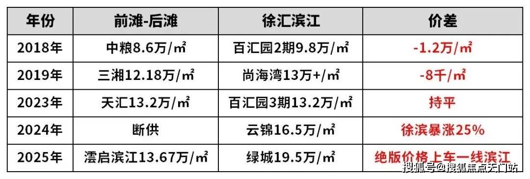2019年前滩的滨江项目三湘印象名邸入市,单价超过12万/㎡,仍与徐滨有价差;