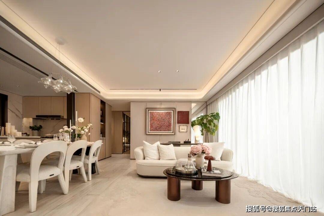 设计背书由问鼎国际大奖的著名设计师吴滨操刀,延续其“汤臣一品5亿顶复”的“摩登东方”理念。以黄浦江为灵感,营造“阅尽千帆后的宁静与松弛感”。通过8.5米南向宽厅、270°环幕玻璃、无冗余装饰的减法美学,让空间如江面般舒展,视野极度开阔。