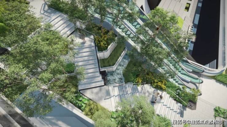 值得一提,项目高线公园打造“三大花园·六大游园”体系,提供丰富的体验场景,而在楼王东侧就是三大花园的其中之一,也是艺术感最强的一个花园,将结合艺术装置和台阶,为业主提供舒适闲坐、眺望树冠景观的空中露台.