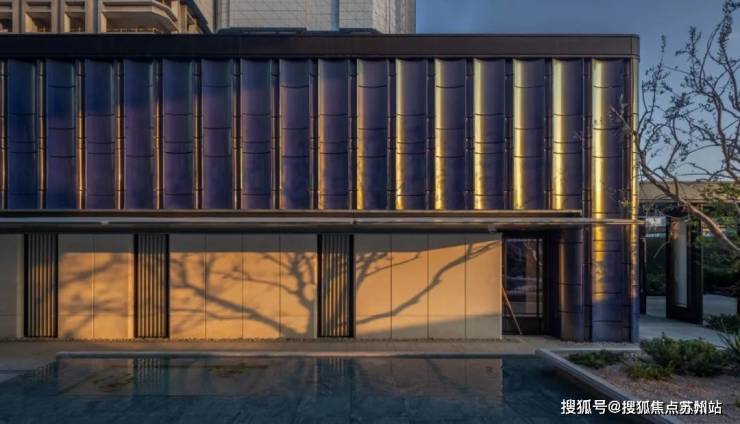会所采用美学弧形玻璃+流光幻彩铝板,超高施工难度与成本,换来极具冲击力的未来感外观: