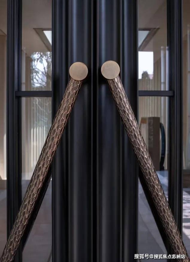 从宏观设计到微观细节,中興傲舍将艺术美学贯彻始终:会所大门以和平饭店旋转门为灵感,经20余位工匠耗时45天纯手工打造的铜制旋转门,厚重质感与艺术气息扑面而来.
