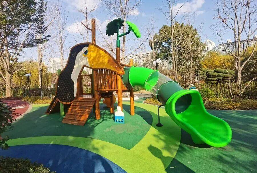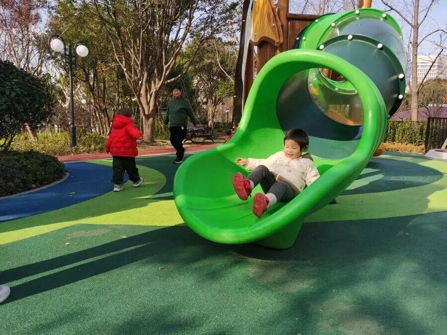 大型游戏设施串联起的区域,更是把“运动感”拉满。色彩鲜亮的滑梯从缓坡延伸而下,承载着孩子们的阵阵欢笑,每个年龄段的孩子都能在这里找到专属乐趣。
