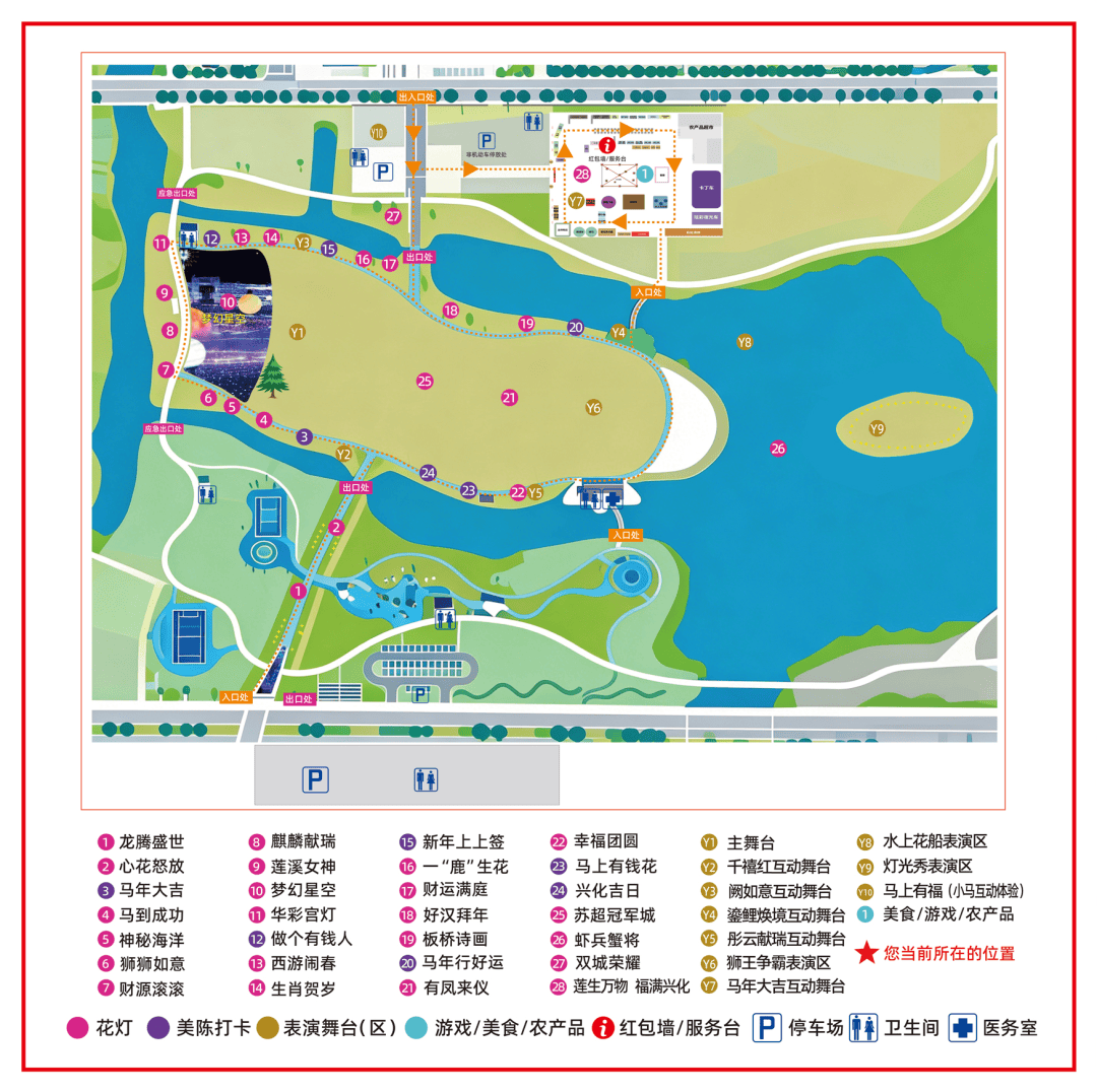 还有《鱼米之乡》《龙凤呈祥》《财神福运》《龙马精神》等众多创意灯组,造型各异、寓意吉祥;园内树木也都披上“星光外衣”,3000㎡草坪星空灯铺陈脚下,漫步其间,如同穿行星河,保证让全家老少都眼前一亮!