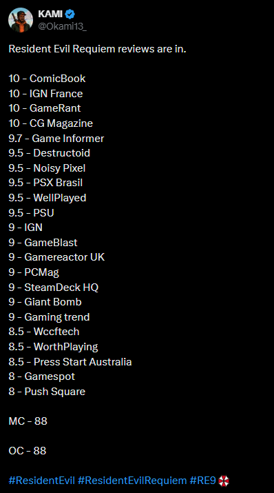 《生化危机9:安魂曲》媒体评分已于昨晚解禁,各大外媒普遍给出了很高的评价。