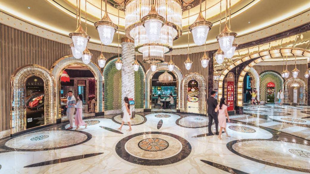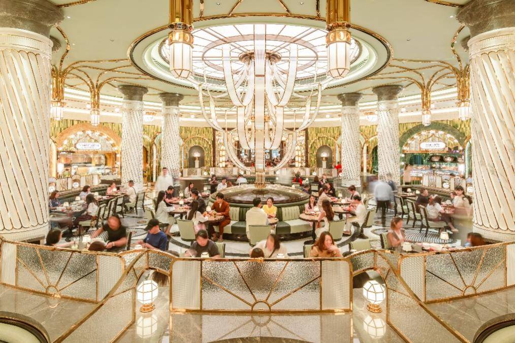坐落于永利皇宫的馥乐庭是融汇18大顶尖亚洲餐饮品牌与永利精致美学的超人气美食地标,获奖设计灵感源自欧洲诸多市集广场的美学精髓,从金碧辉煌的拱门到精美繁复的地砖,通过别出心裁的空间设计,生动诠释充满历史底蕴的经典元素,营造出极具感官冲击力的用餐氛围。作为国际合作的集大成之作,馥乐庭荟萃了全世界顶尖匠艺 —— 意大利马赛克百年世家精雕细琢的装饰拱门,完美还原了欧洲油画般的逼真质感;捷克波西米亚玻璃千年工艺典范打造的巨型吊灯,如喷泉般在美食广场璀璨绽放;美国先锋艺术家独家设计的镜面雕塑,以扭曲的镜面为拍照增添无限趣味。在美轮美奂的馥乐庭,每个角落都散发着独特的艺术气息和匠心独运的魅力。这里不仅是品味非凡的美味殿堂,更是让人流连忘返的打卡胜地。