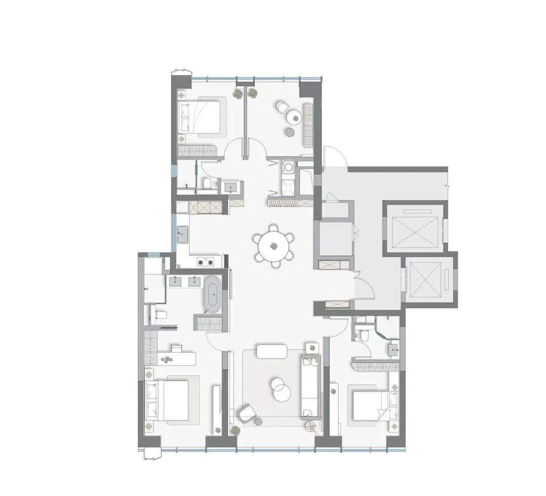 精装标准直接拉满,全屋华为智能系统,搭配大金、汉斯格雅等国际一线项人性化细节,从收纳到静音,从新风到地暖,都为你考虑周全了。 户型全是190㎡起步的大平层,圈层非常纯粹。无论是190㎡、220㎡还是249㎡的户型,都做到了四房朝南、客厅直面宽阔景观,尺度感和舒适度无可挑剔,是真正的改善型住宅。