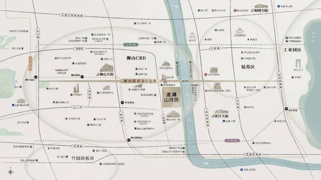 “一条狮山路,半部高新史”。龙湖·山河颂正位于这条黄金中轴旁。三横三纵路网、三条地铁线环绕,举步即达。周边汇聚苏州外国语学校、新区实验小学等一众头部教育资源,孩子成长一路优享。选择这里的苏州改善型住宅,意味着占尽了主城核心的繁华与便利。